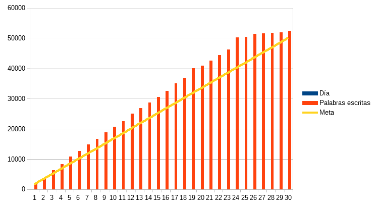 Estoy contenta. He conseguido llegar a las 52401 palabras. Y, encima, he ido cumpliendo las metas en mi media.
